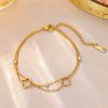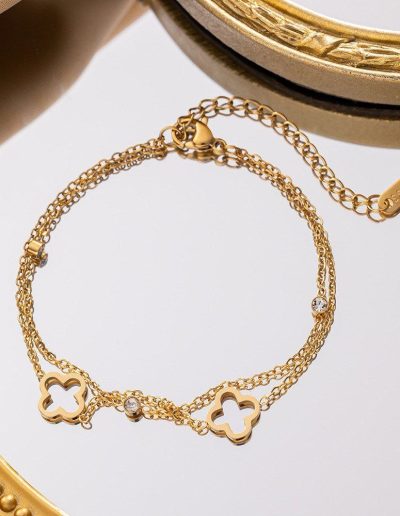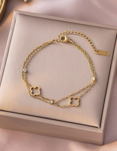 Double Layer three Diamond Leaf Clover Style stainless steel Bracelet B78