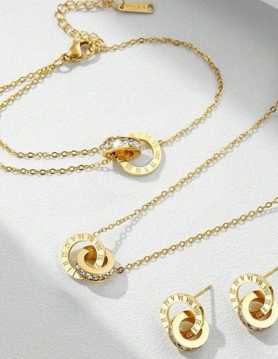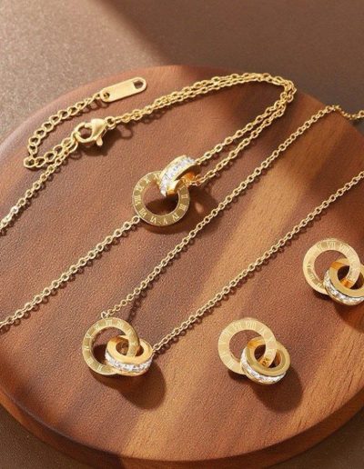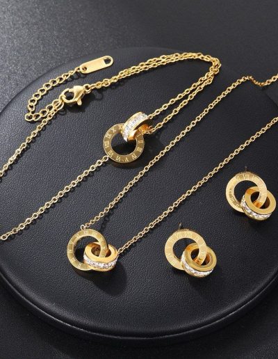 Double Ring Three piece Stainless Steel Jewellery Set J18
