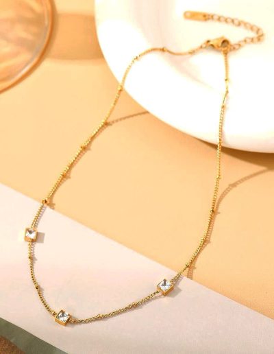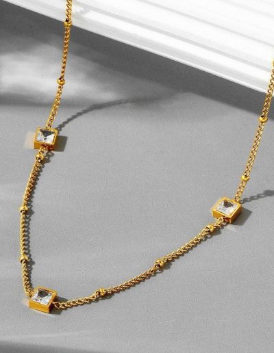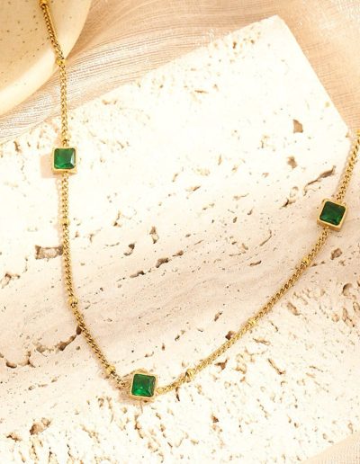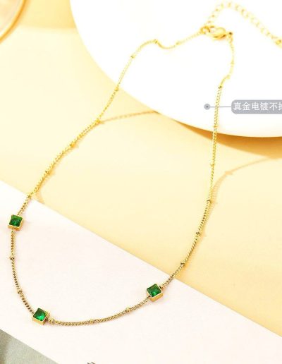 Multi Ball White And Green stone 21k Gold Platted Stainless steel Necklace N138