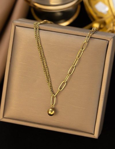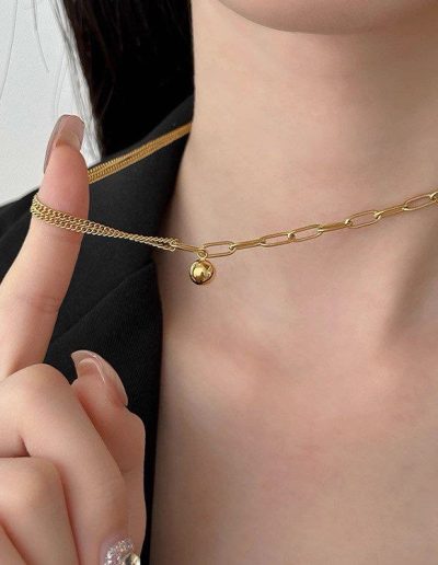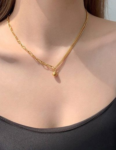 One Hanging Ball Double Layer thick and Thin chain Necklace N125